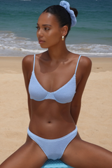 'Powder Blue' Scrunch Thick Strap Fixed Bikini Bottoms